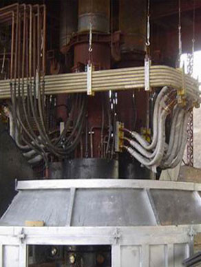 本設備用來對初煉爐(電弧爐、轉爐等)所熔鋼水進行精煉。根據工藝要求,可在常壓下電弧加熱,加合金料,對鋼液進行升溫、保溫、合金化,脫氣、脫硫、去雜質、使鋼液成分均勻。精煉的鋼種有滾珠軸承鋼、合金結構鋼、工具鋼、彈簧鋼、碳結構鋼等。